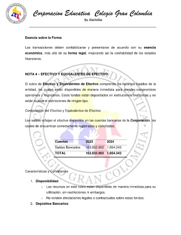 Los saldos reflejan el efectivo disponible en las cuentas bancarias de la Corporación, los
