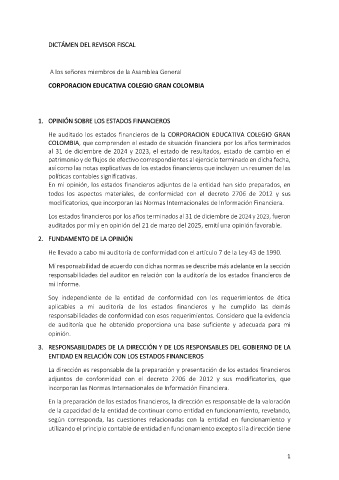 1. OPINIÓN SOBRE LOS ESTADOS FINANCIEROS